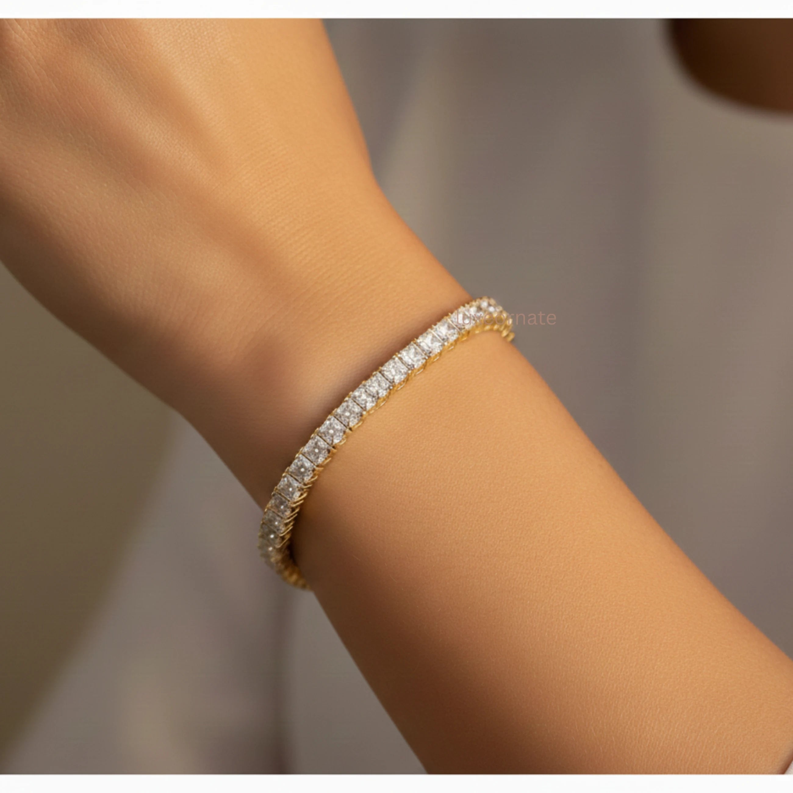 The Eternal Radiance Princess Diamond Tennis Bracelet is a true symbol of classic luxury and modern craftsmanship. Featuring a seamless row of perfectly matched princess cut diamonds, each stone is precision set to maximize sparkle and symmetry. Crafted in lustrous gold, the bracelet offers a soft, romantic glow that beautifully complements the icy brilliance of the diamonds. The secure box clasp ensures comfortable all day wear while maintaining a sleek, refined profile on the wrist.