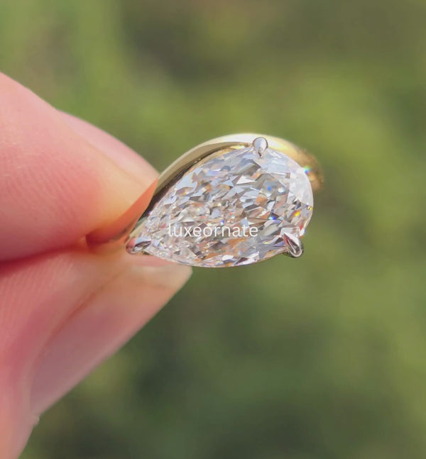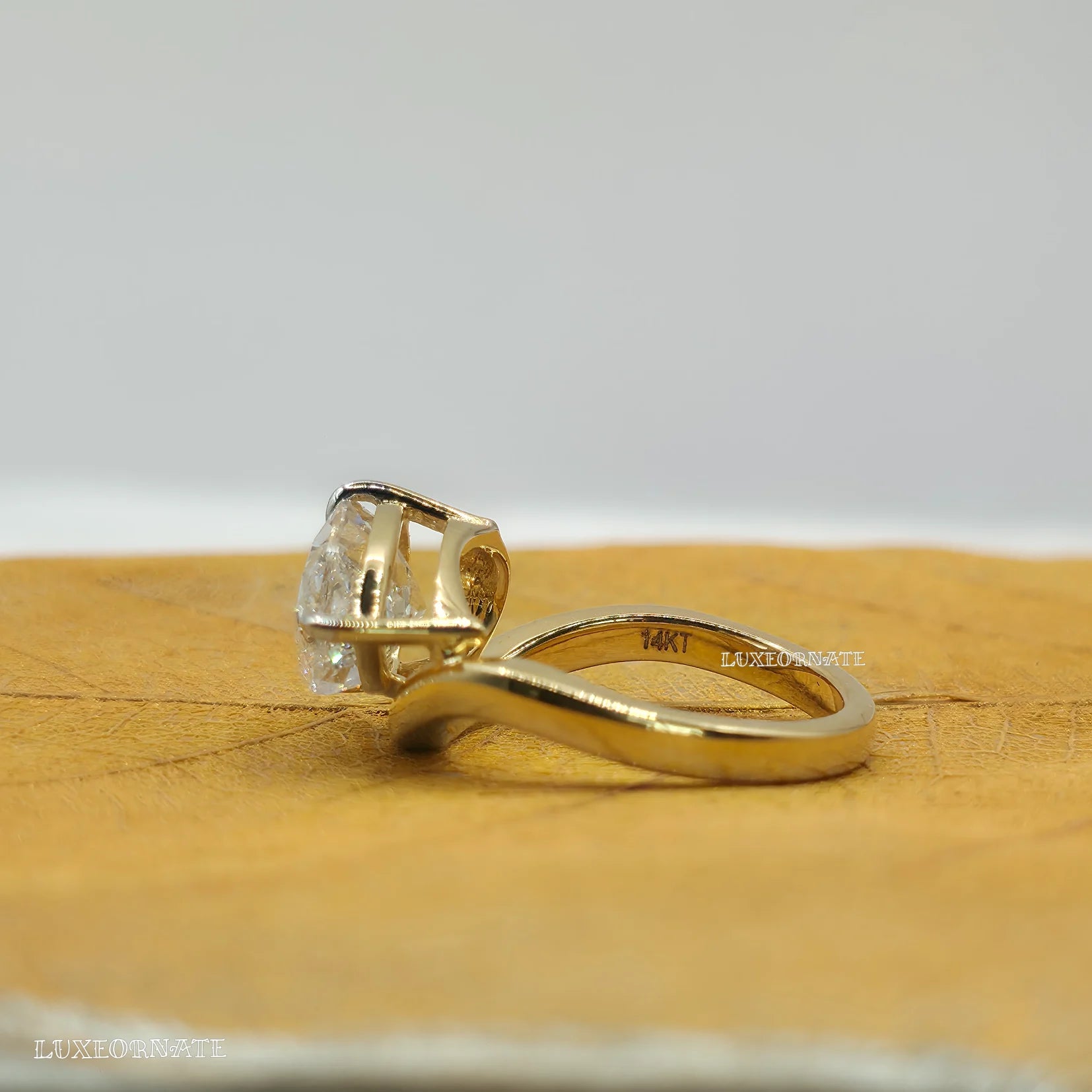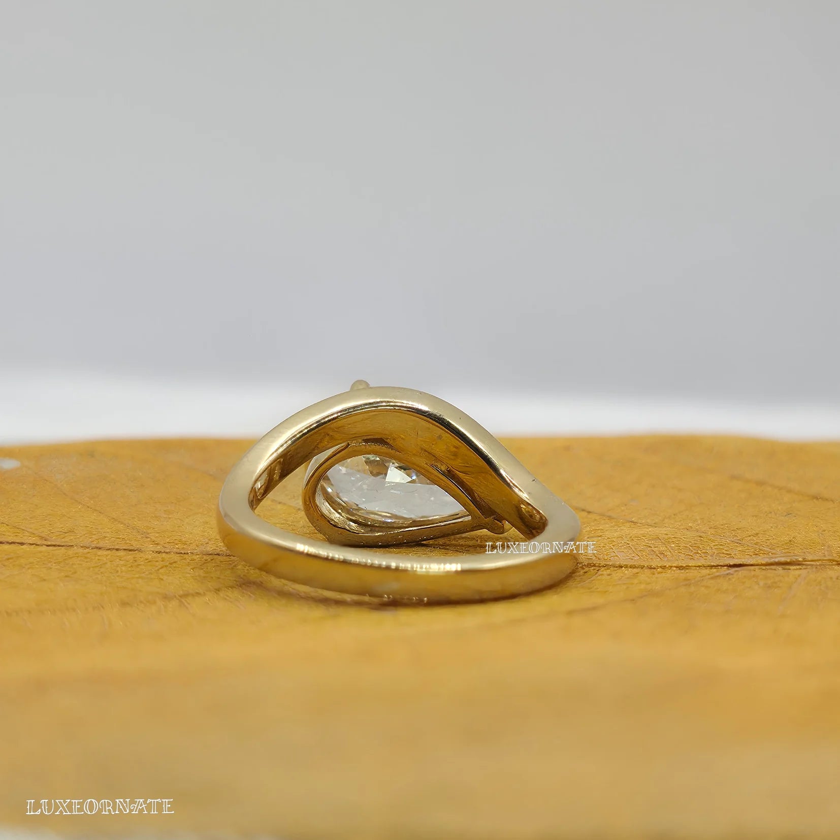 The Modern Wave Pear Diamond Solitaire Ring features a stunning pear shaped diamond gracefully cradled in a fluid wave inspired yellow gold band. The sleek asymmetrical design enhances the brilliance of the solitaire while offering a contemporary, elegant look. Perfect for engagements, anniversaries, or everyday luxury, this ring blends modern artistry with timeless sophistication.