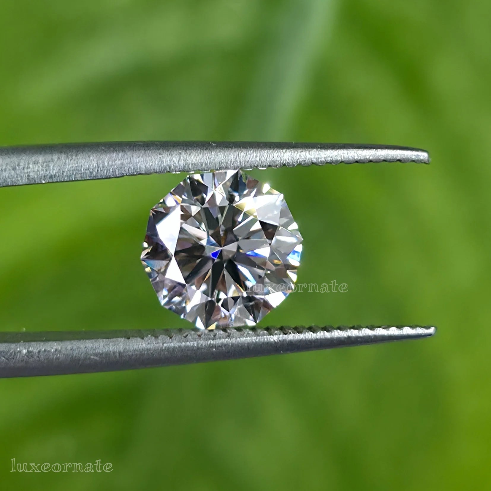 This 1.25 carat decagon cut diamond features a distinctive ten sided silhouette with brilliant faceting that delivers exceptional sparkle and fire. Its precise symmetry and modern round inspired shape make it a refined choice for contemporary engagement rings and luxury fine jewelry designs.