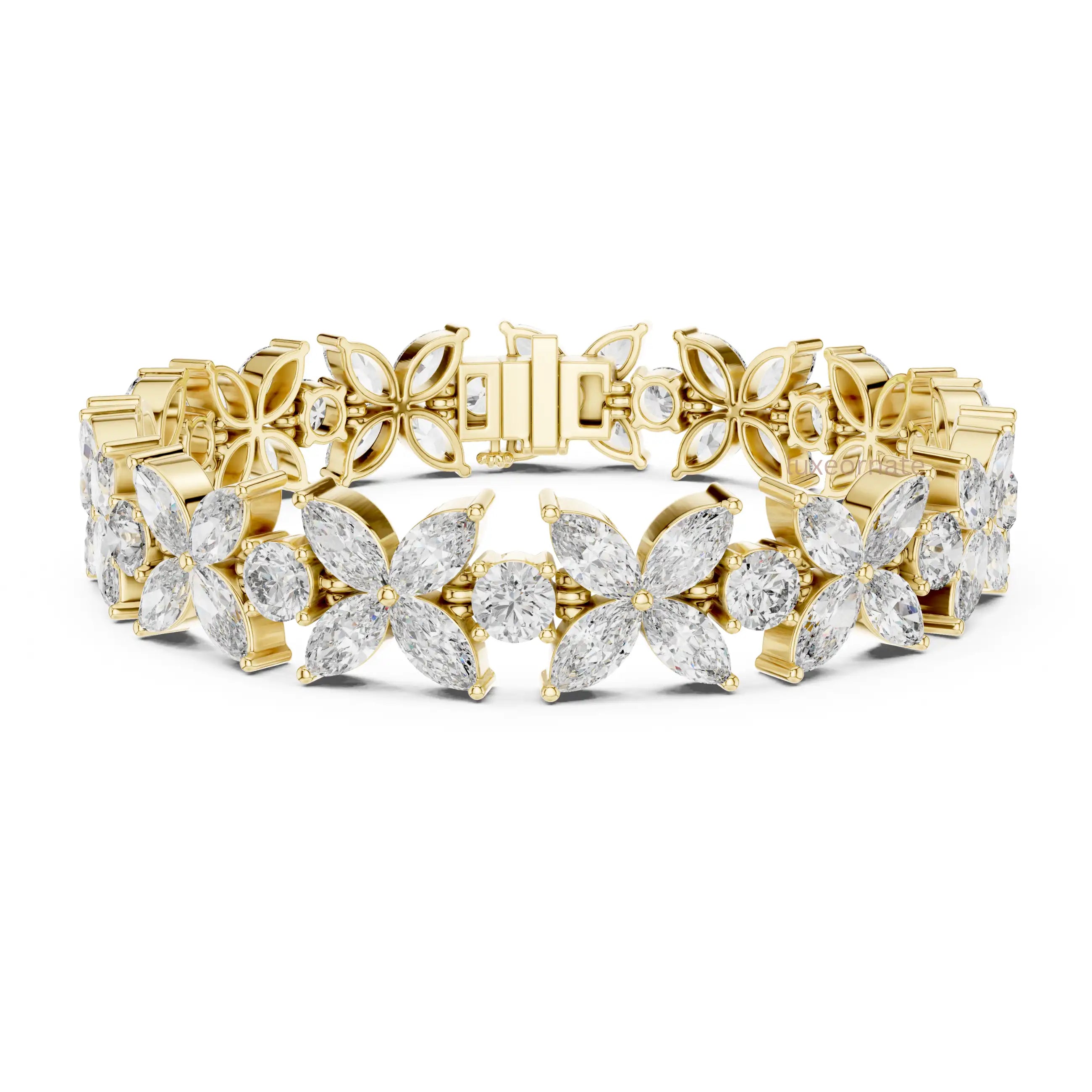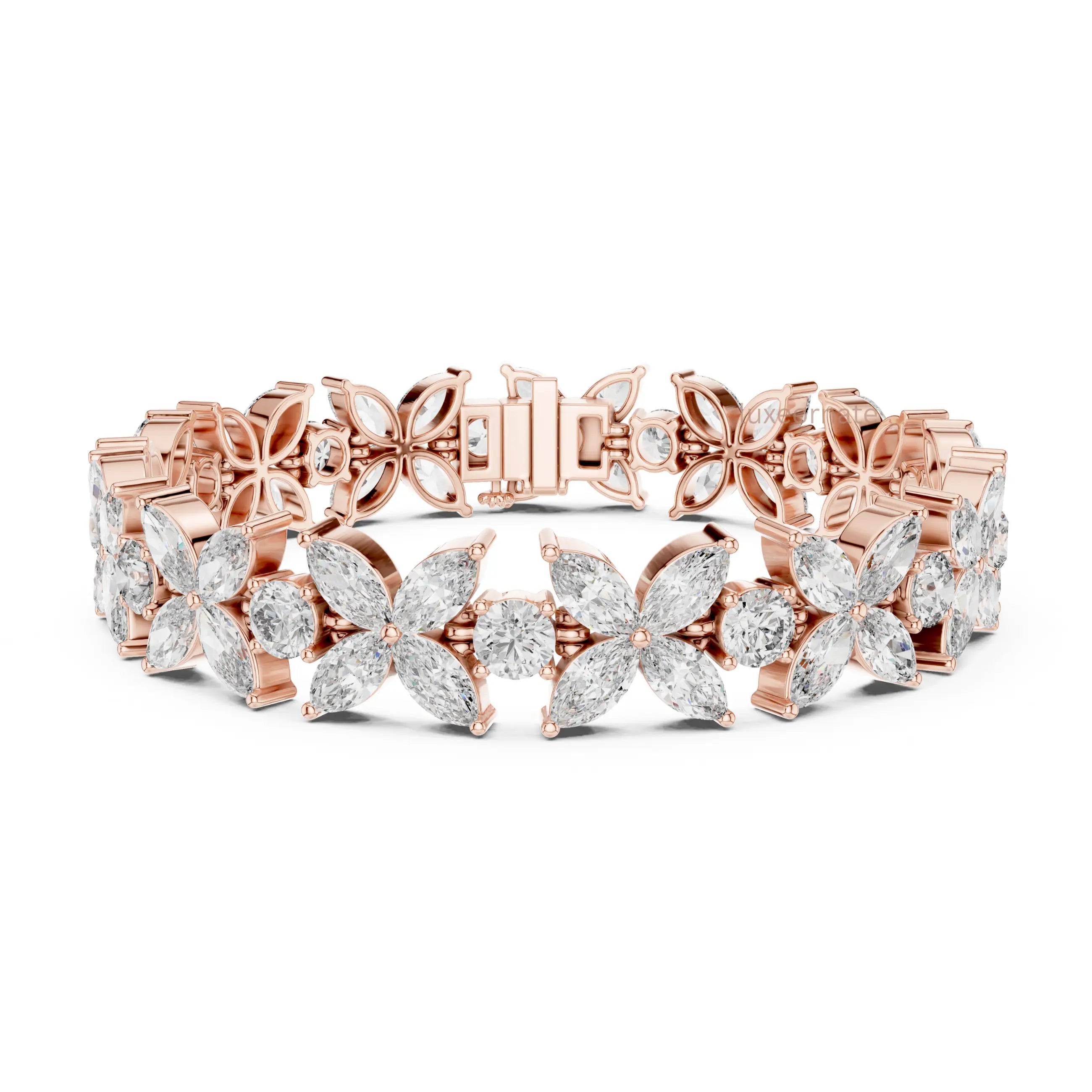 Inspired by blooming petals, this exquisite Stylish Flower Diamond Bracelet features repeating flower shaped clusters crafted from elegant marquise and round diamonds. Each floral link sparkles with graceful symmetry, creating a soft yet luxurious statement across the wrist.