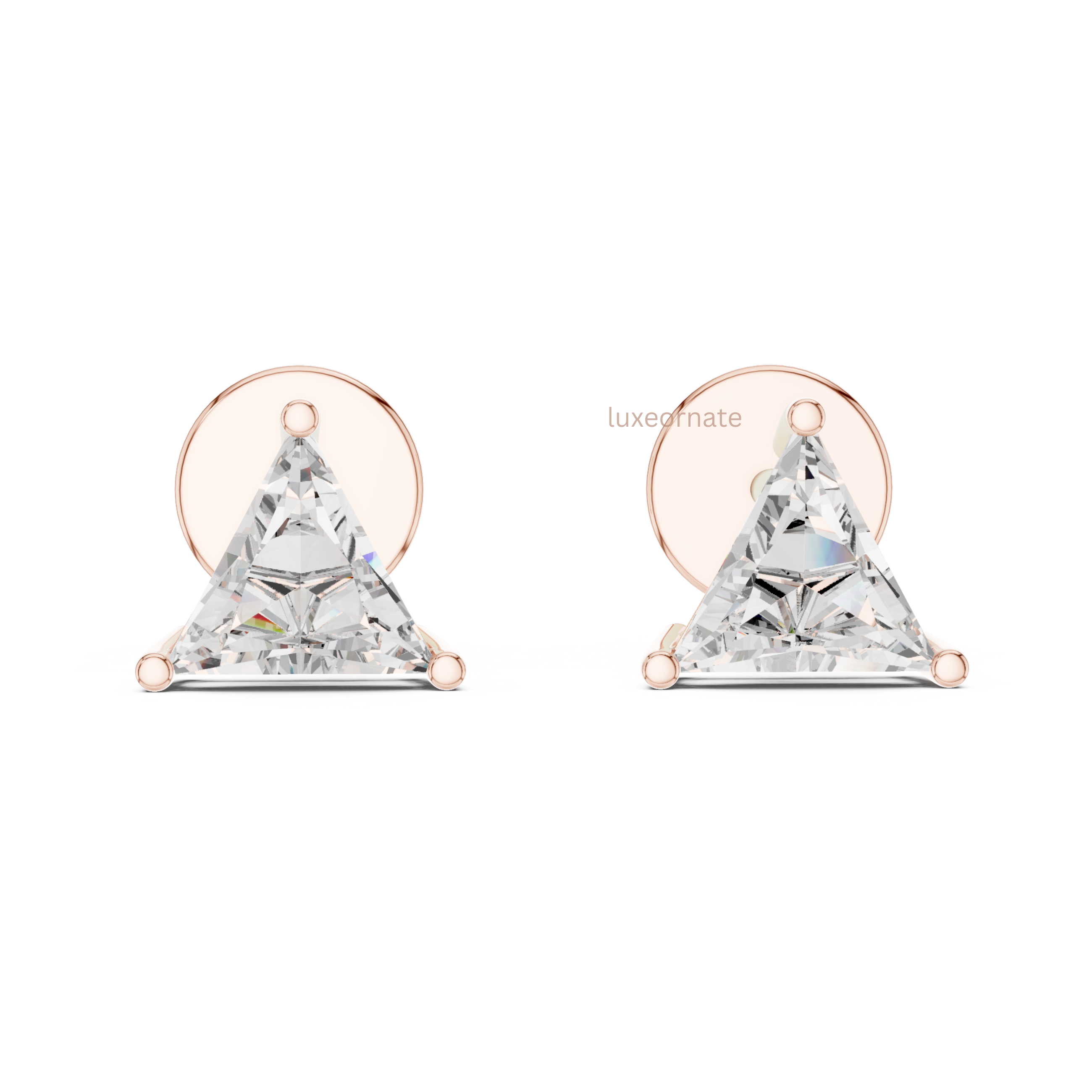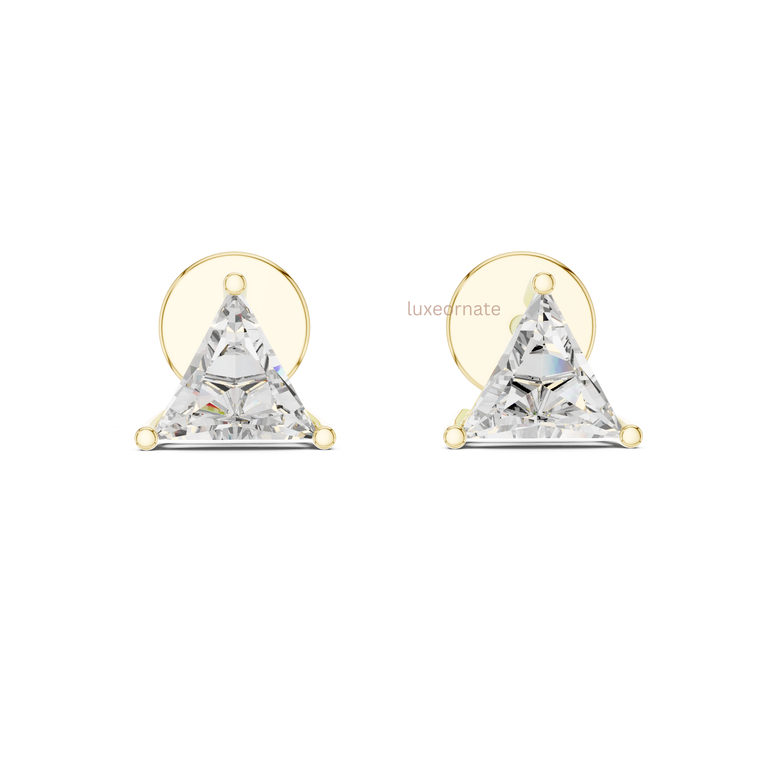 Bold geometry meets refined elegance in these Triangle cut lab grown diamond stud earrings. Set in polished yellow, rose, white, silver gold with a sleek open gallery design, they deliver striking brilliance, modern sophistication, and lightweight comfort. perfect for everyday luxury, gifting, and statement styling.