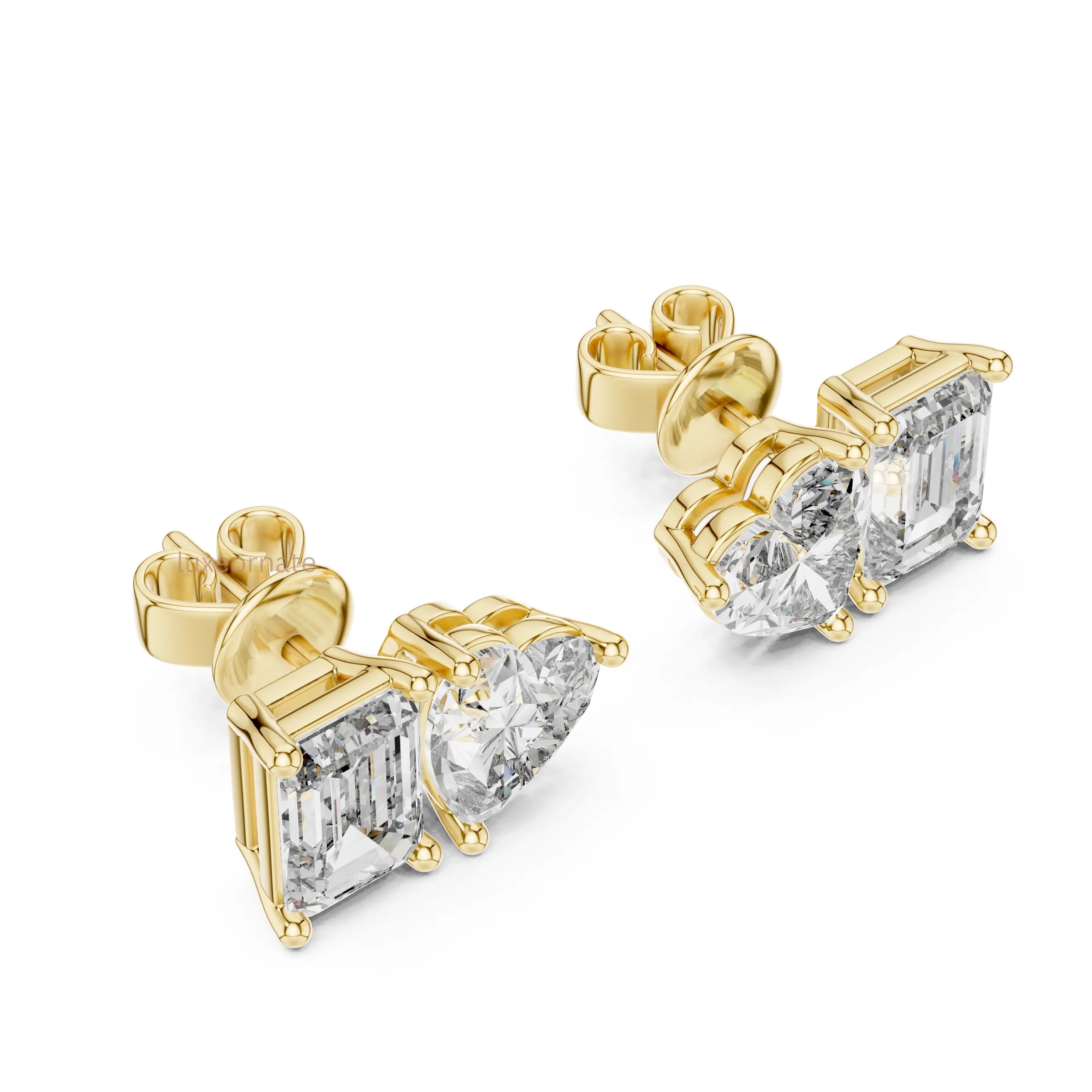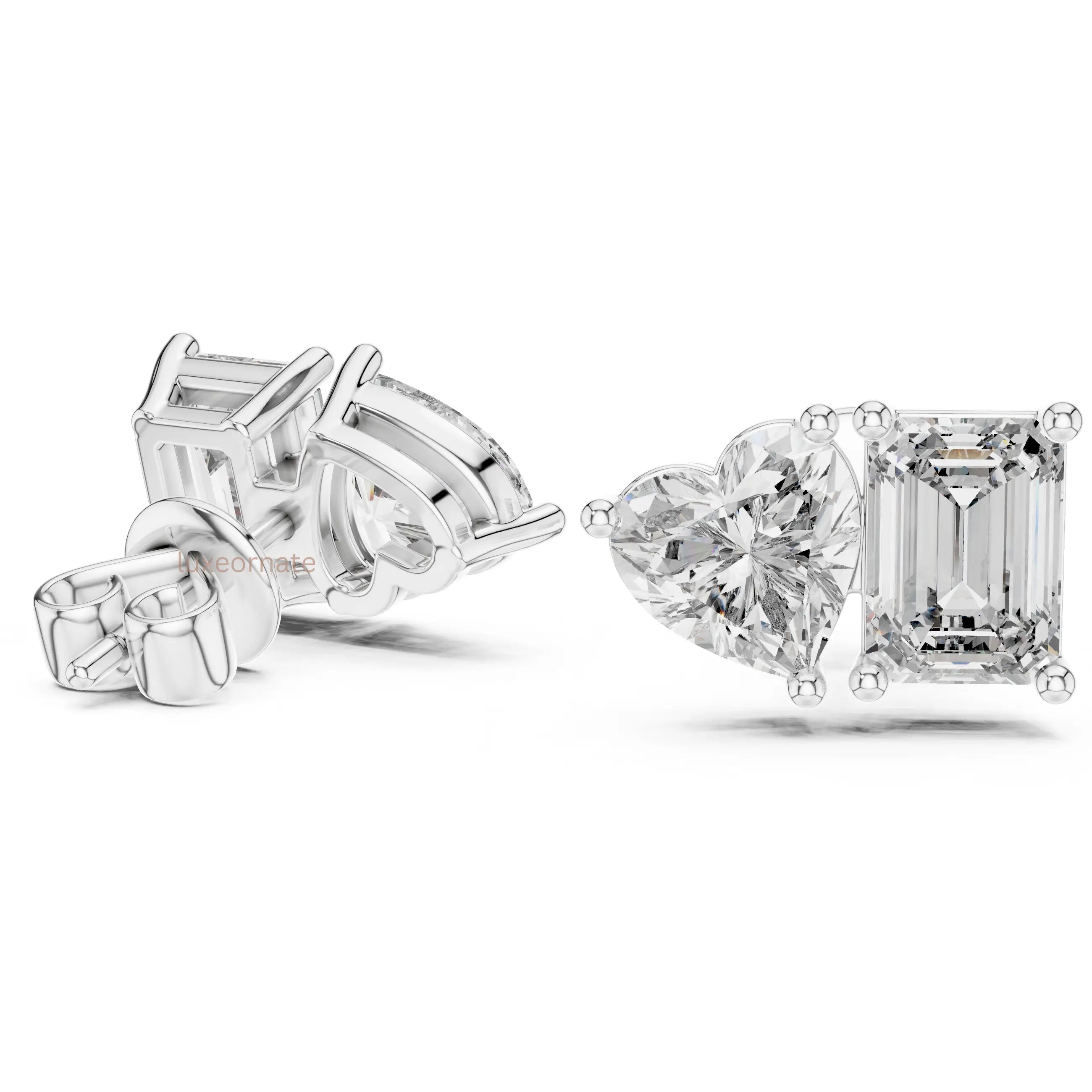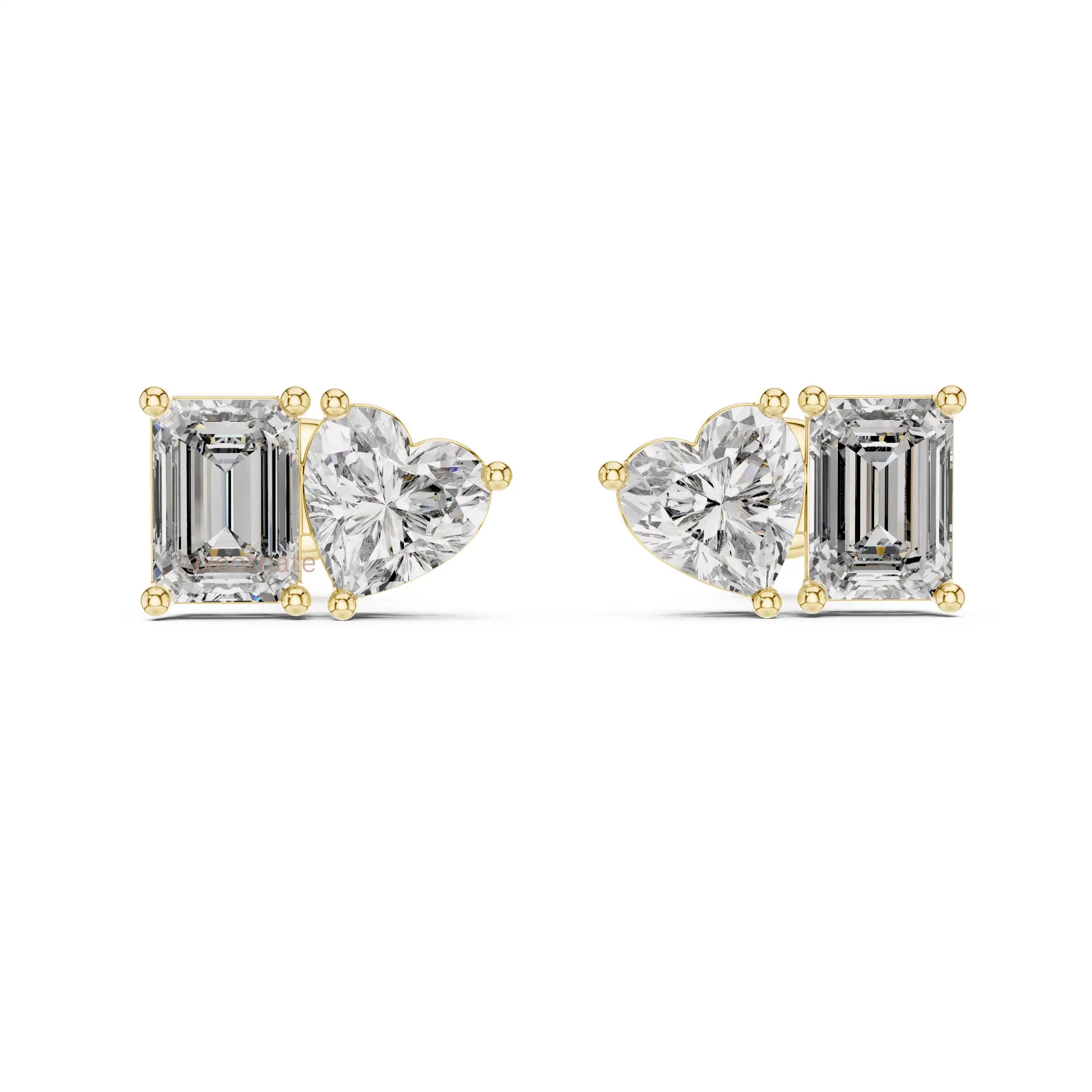 Celebrate modern romance with these stunning Heart & Emerald Cut Lab Grown Diamond Stud Earrings, designed to symbolize love and elegance in one refined silhouette. Each earring features a sparkling heart shaped diamond paired with a sleek emerald cut diamond, beautifully balanced for a bold yet graceful statement.