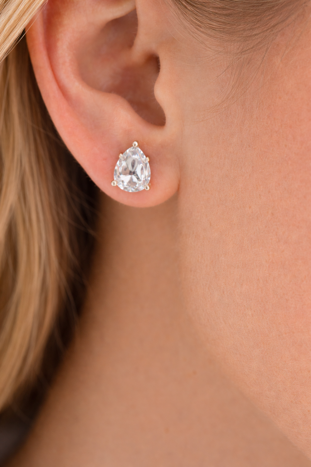 Pear Shape Emerald Teardrop...Pear Cut Diamond Stud Earrings
