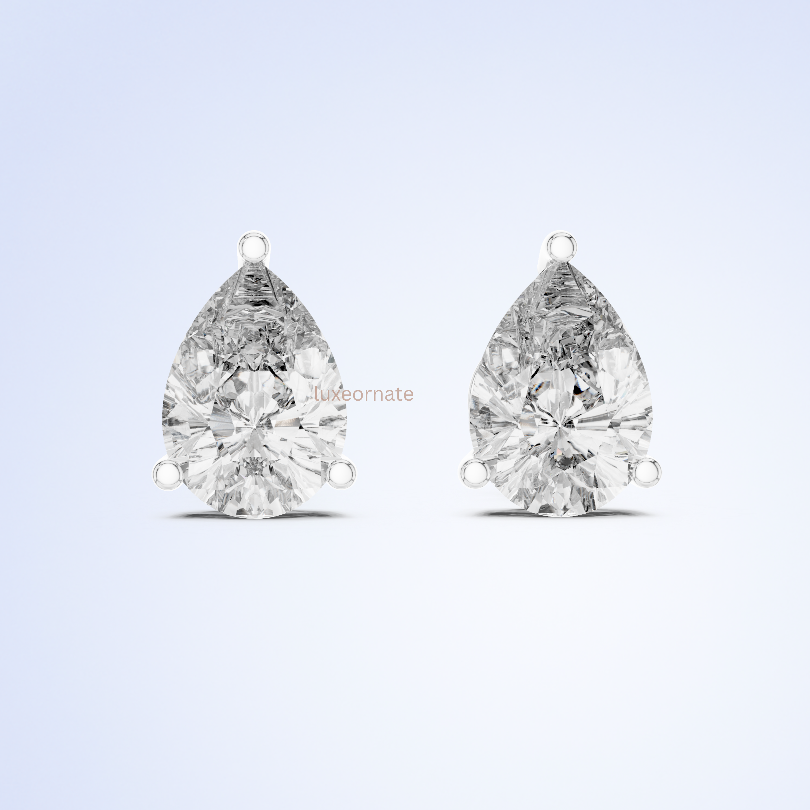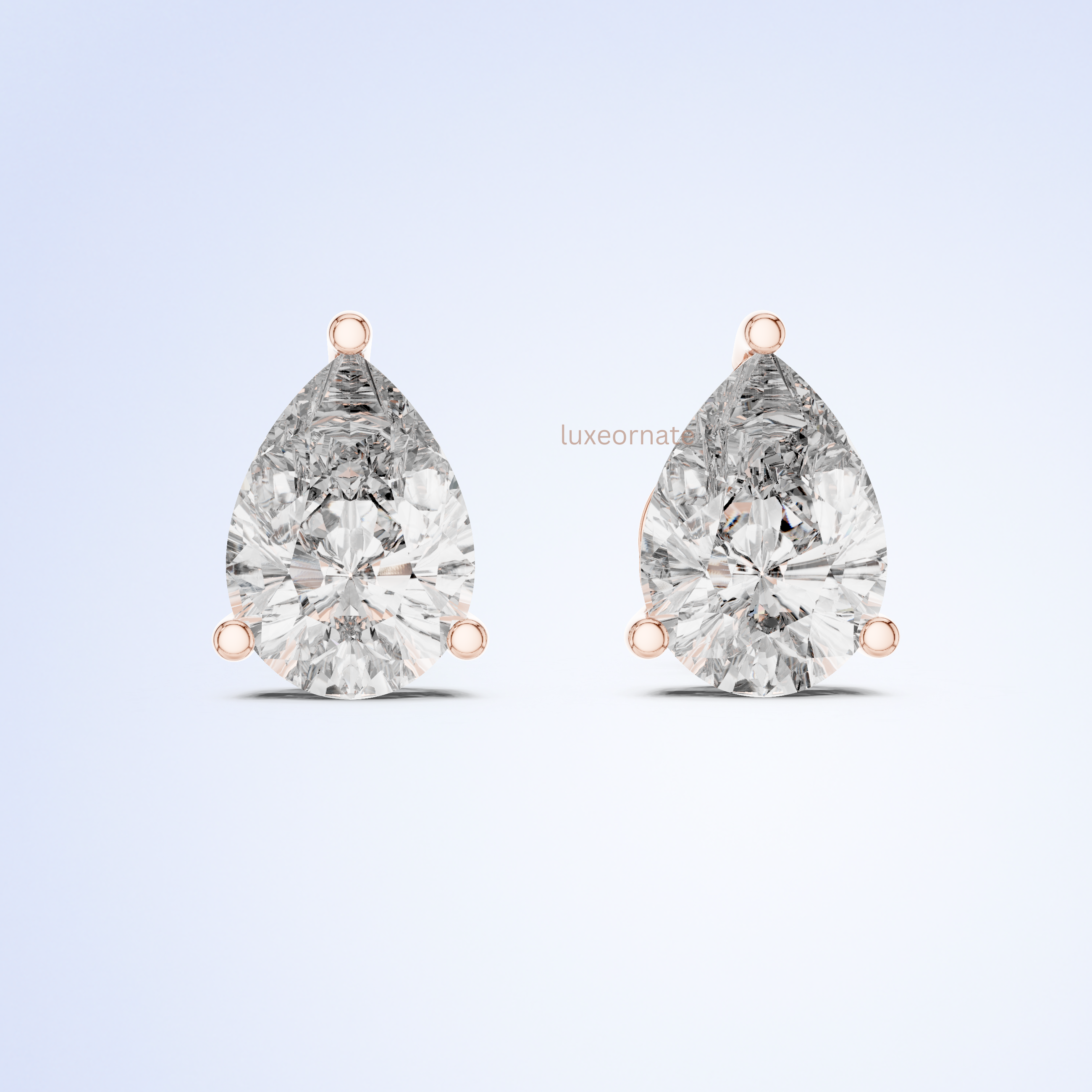 These elegant pear cut lab grown diamond stud earrings feature brilliant teardrop-shaped diamonds set in a secure three prong gold setting. Designed to enhance sparkle and grace, they offer timeless beauty, ethical luxury, and everyday comfort. perfect for daily wear, weddings, anniversaries, and refined gifting.