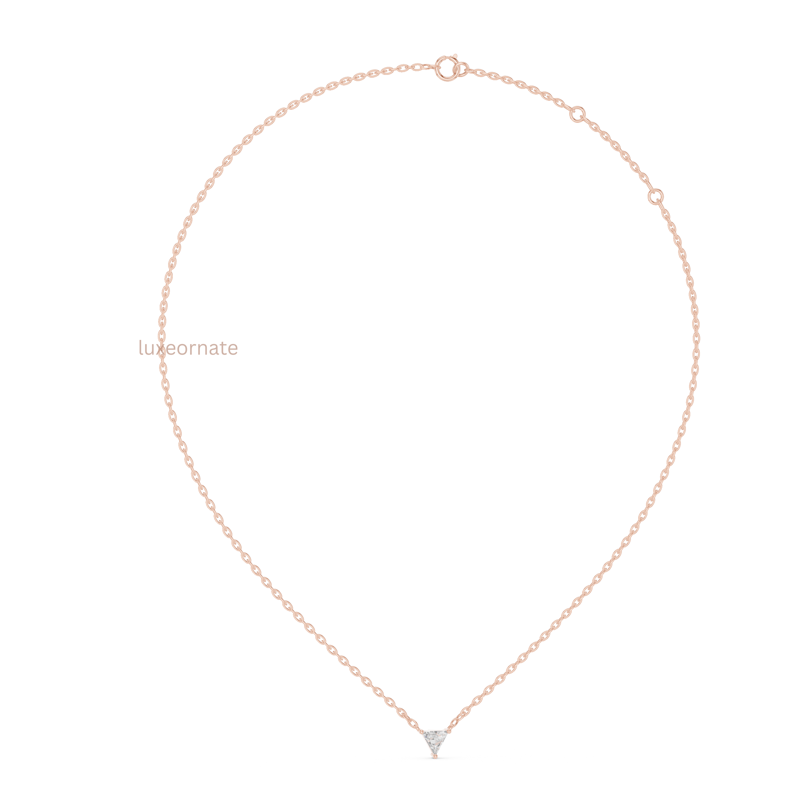 Elegant and modern, the Celestia Trillion Solitaire Pendant features a brilliant trillion cut diamond suspended from a sleek gold chain. Designed to catch light from every angle, this minimalist pendant adds refined sparkle to everyday looks and special occasions alike. perfect for gifting, layering, or timeless solo wear.