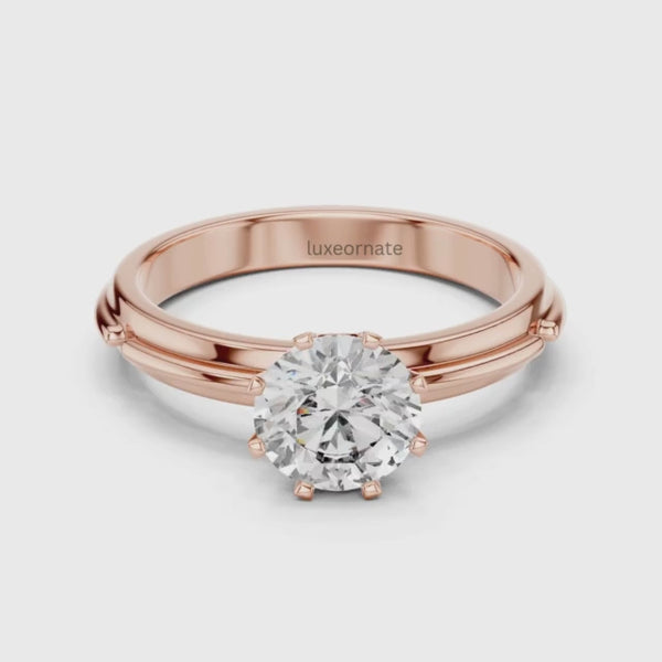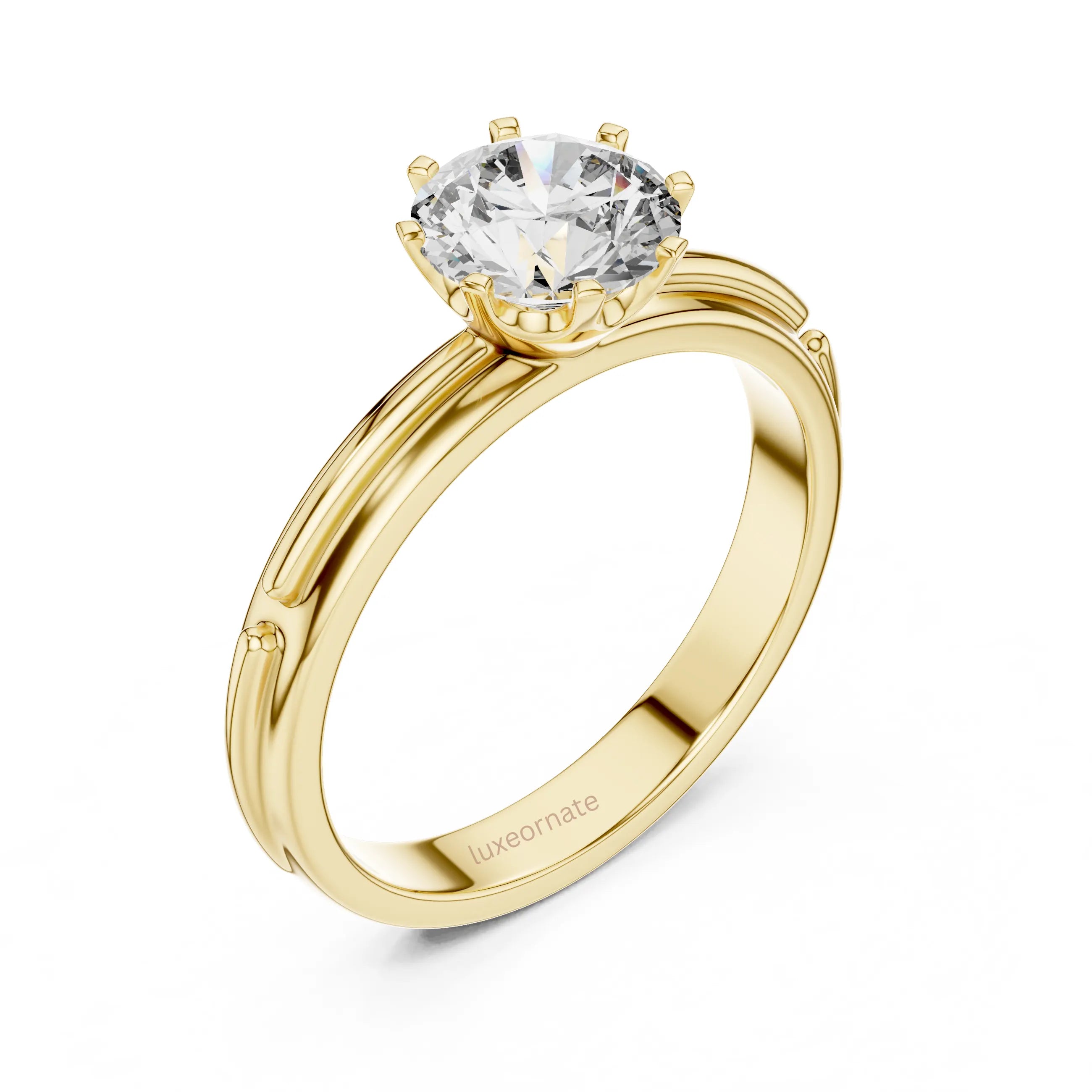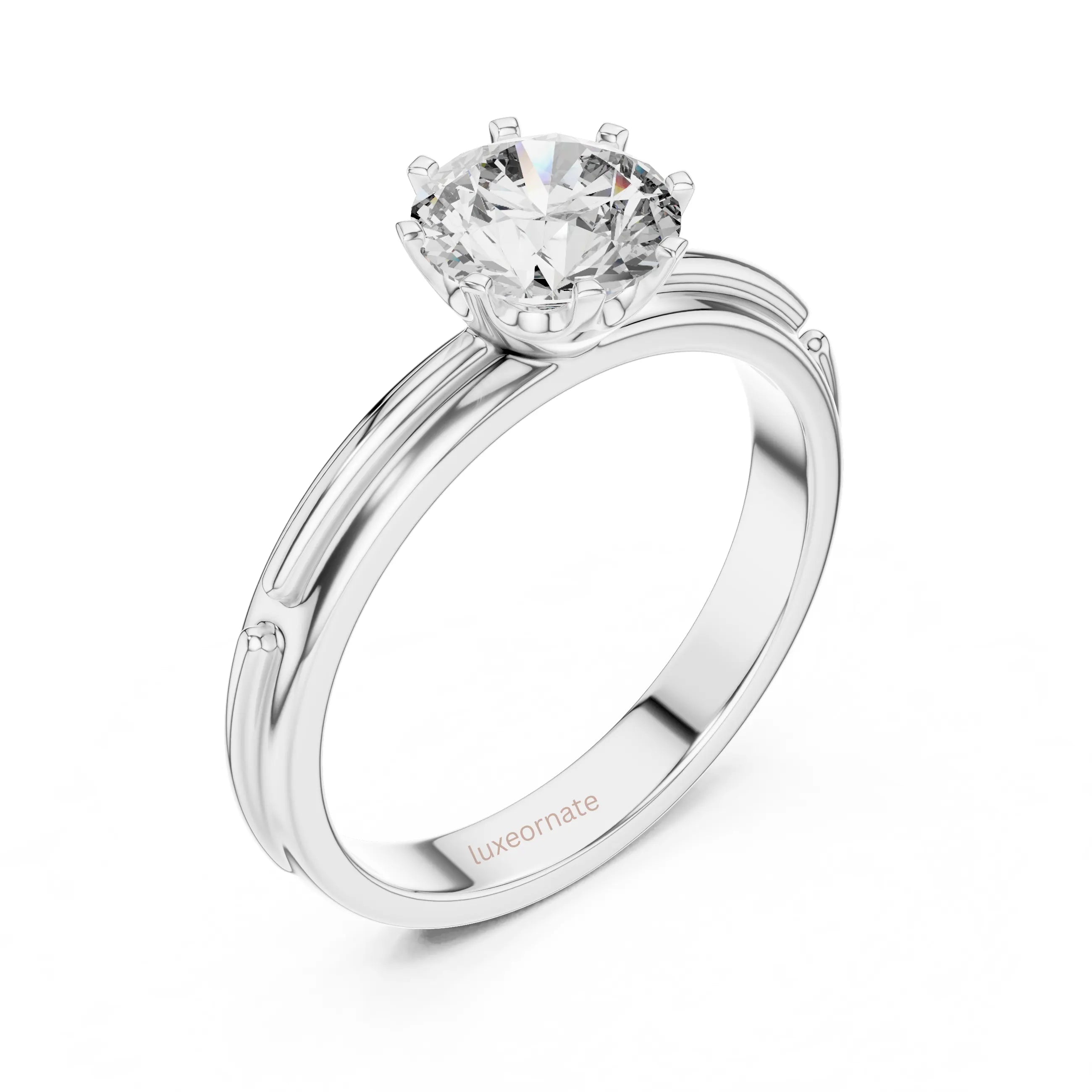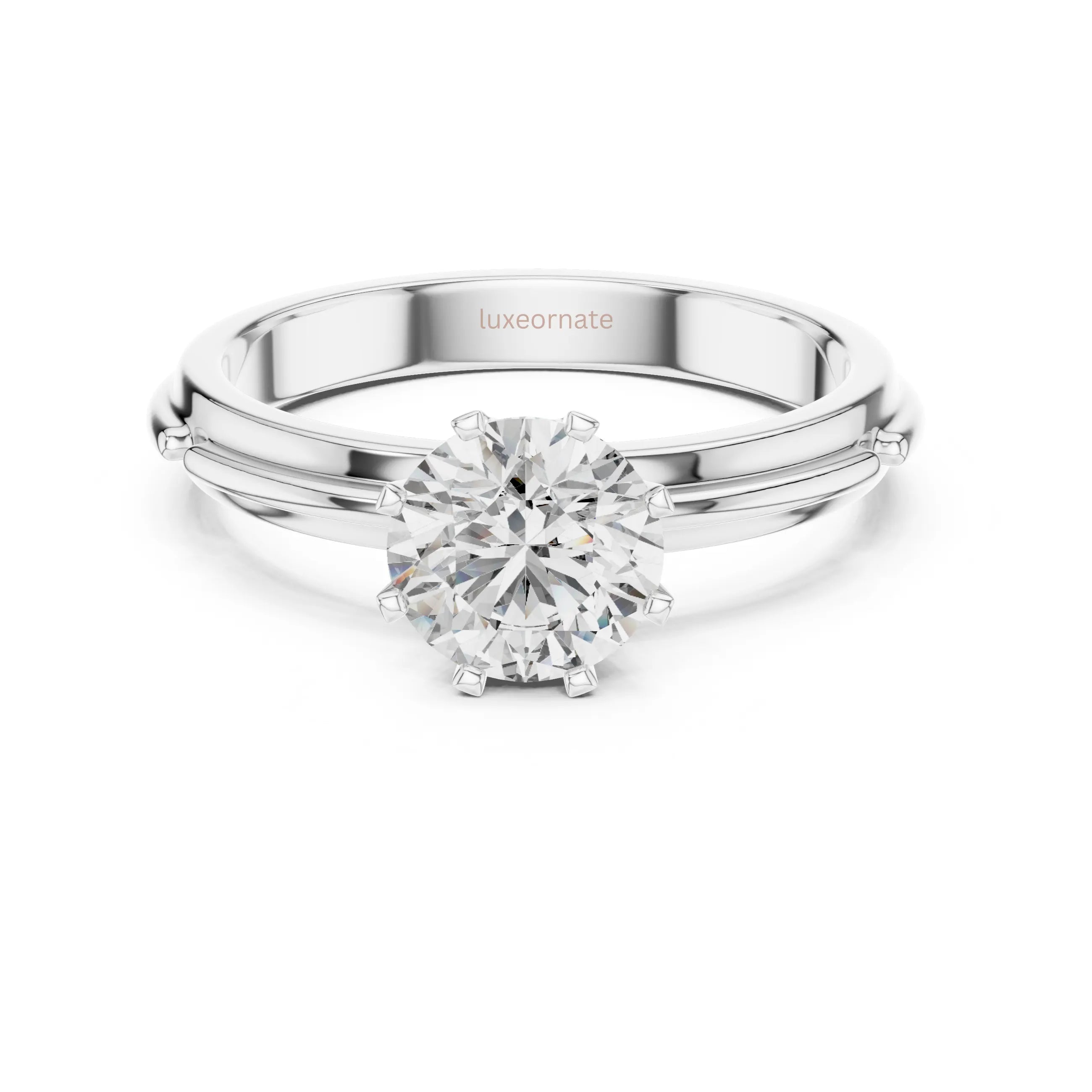 The best Lab Grown Diamond Ring features a round radiant center diamond secured in an elegant prong setting, enhanced by a refined side profile with smooth sculpted shoulders. The polished band flows seamlessly into the setting, creating depth, brilliance, and a timeless luxury look from every angle.
