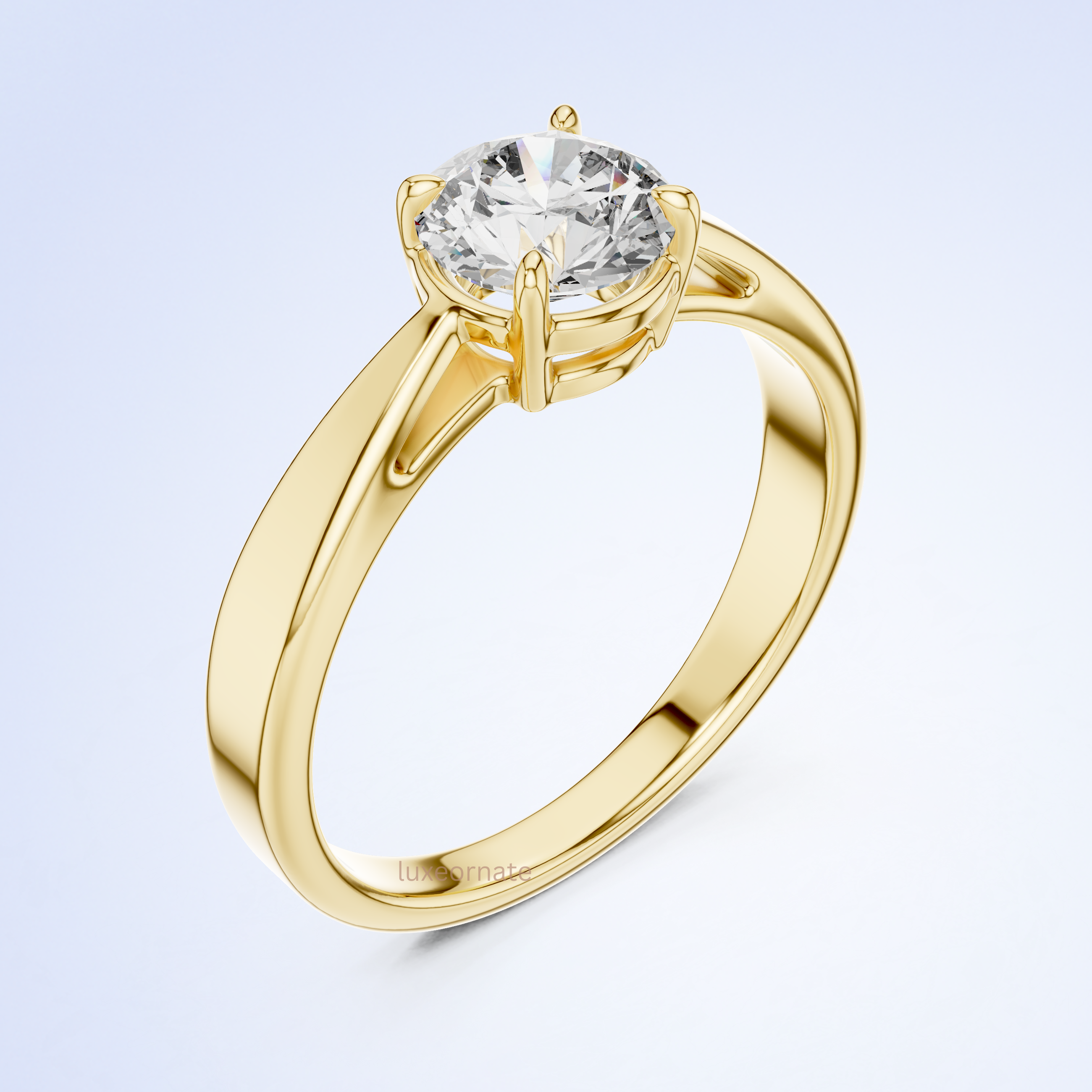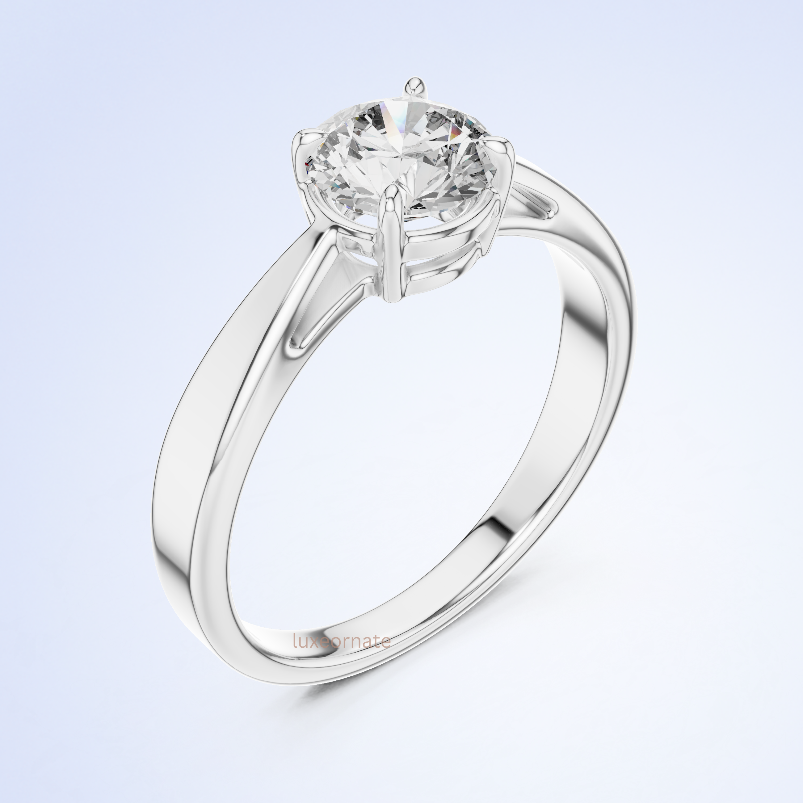 Elegant and romantic, this round cut lab grown diamond solitaire ring is set in a graceful prong setting on a high polish rose gold band. Designed to enhance brilliance and comfort, it’s perfect for engagements, proposals, anniversaries, and timeless everyday luxury.