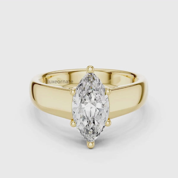The classic Marquise Solitaire Diamond Ring is a timeless expression of elegance and sophistication. Showcasing a stunning 2.00 carat marquise cut diamond, this ring is designed to elongate the finger with its graceful silhouette and brilliant sparkle. The sleek solitaire setting allows the diamond to take center stage, while the smooth polished band adds a refined, modern touch.