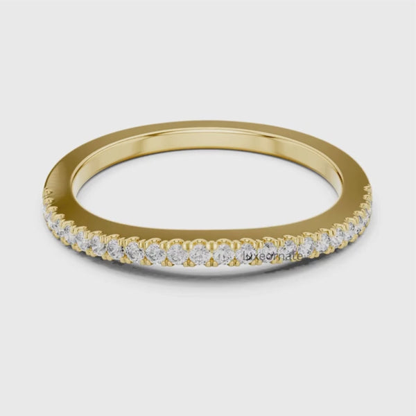 Delicate yet radiant, the Eternal Spark Minimal Diamond Band Ring features a slim polished band adorned with round cut diamonds for subtle, continuous sparkle. Designed with a comfortable low profile setting, it’s perfect for everyday wear beautiful worn alone or stacked, and ideal as a wedding band, anniversary ring, or meaningful symbol of love and commitment.