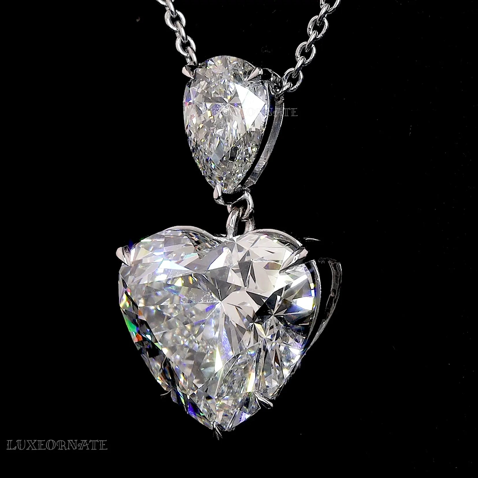 Pendant Stone Shape: Heart cut main diamond + Pear cut top diamond