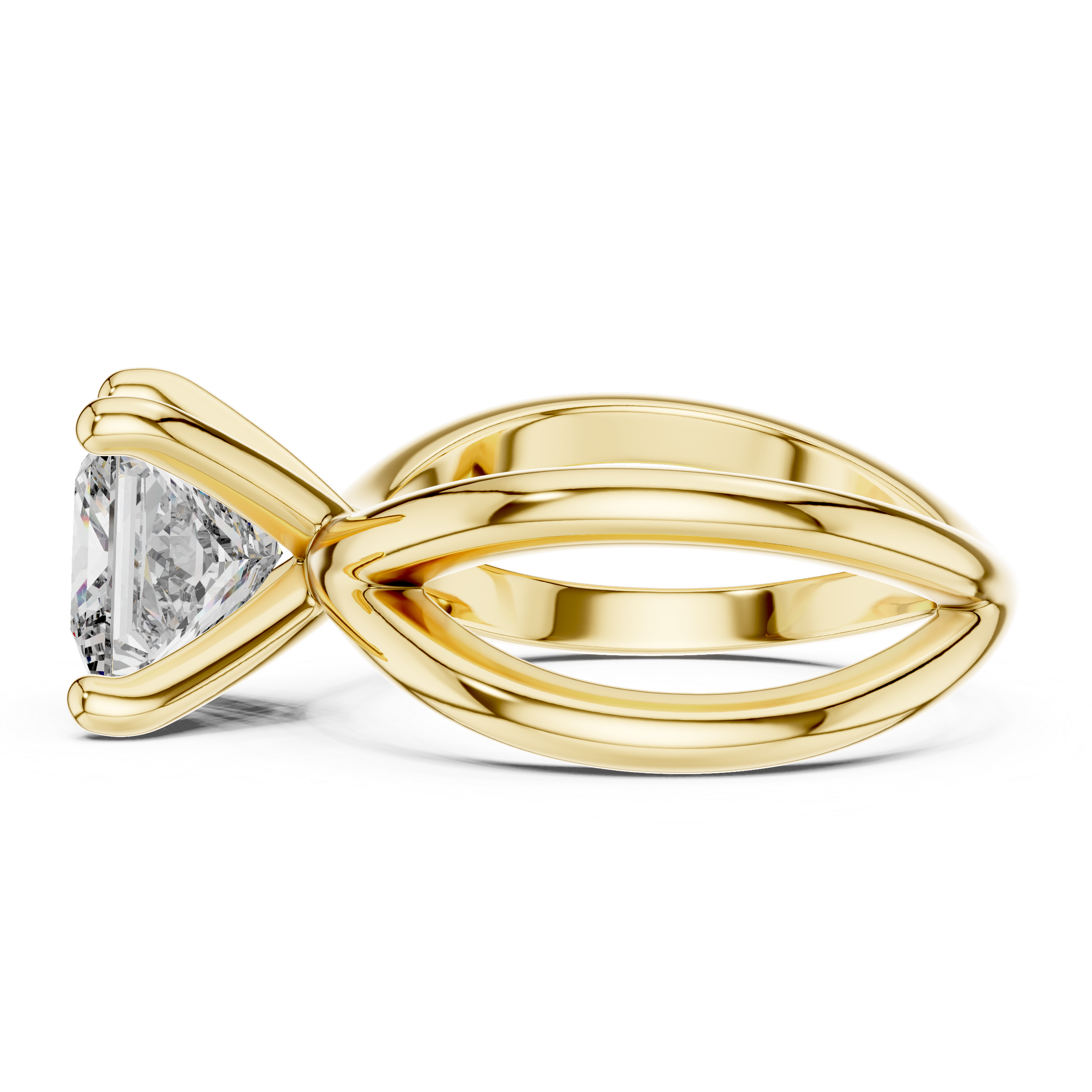 Celebrate sculptural elegance with the Princess Cut Lab Diamond Twisted Band Solitaire Ring, a striking design that blends modern artistry with timeless luxury. At its center shines a radiant princess cut lab-grown diamond, secured in a classic four-prong setting that enhances brilliance while ensuring lasting durability. The high-polish twisted crossover band gracefully wraps around the center stone, creating fluid movement, depth, and a bold contemporary silhouette with sparkle from every angle.