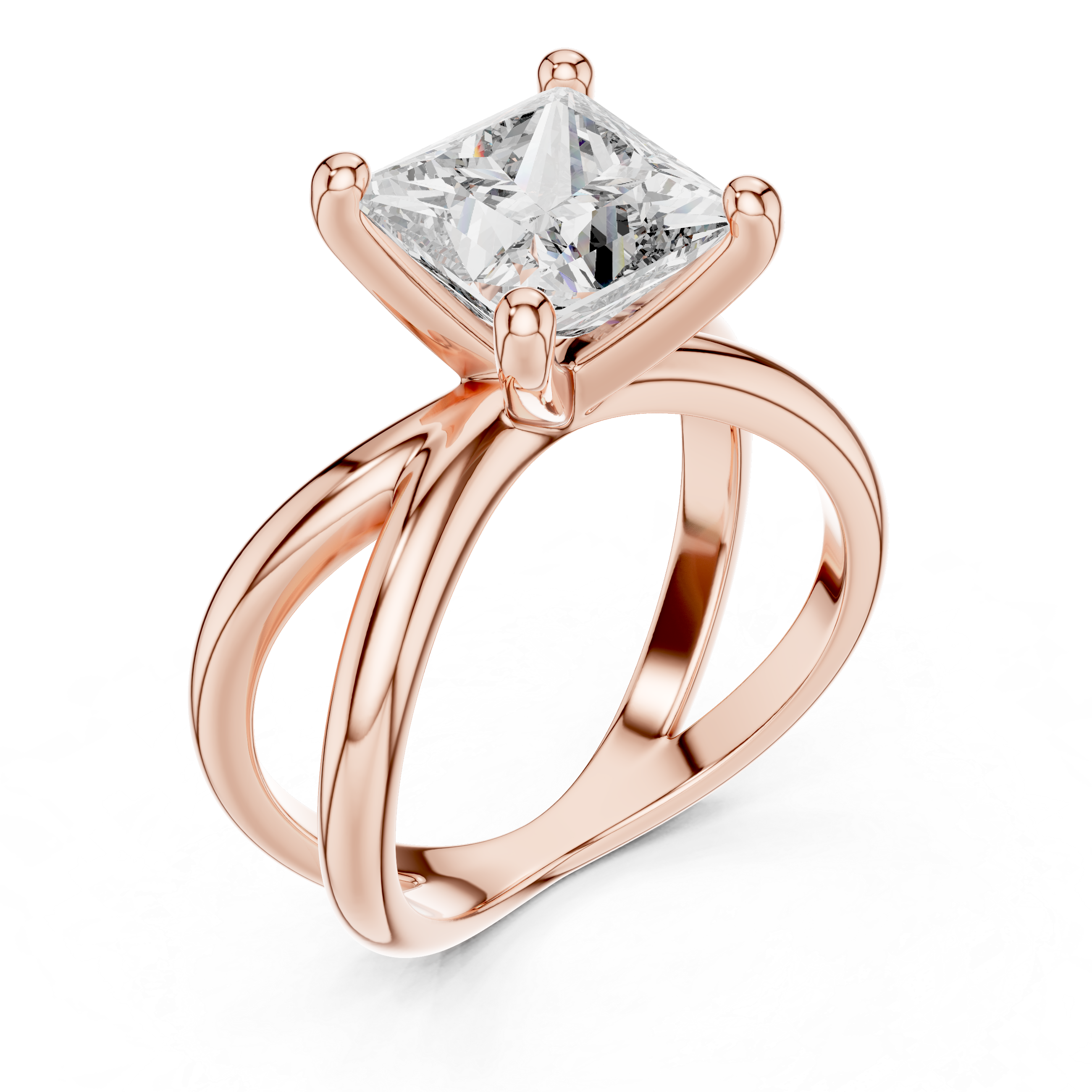 Princess Cut Lab Diamond Twisted Band Solitaire Ring