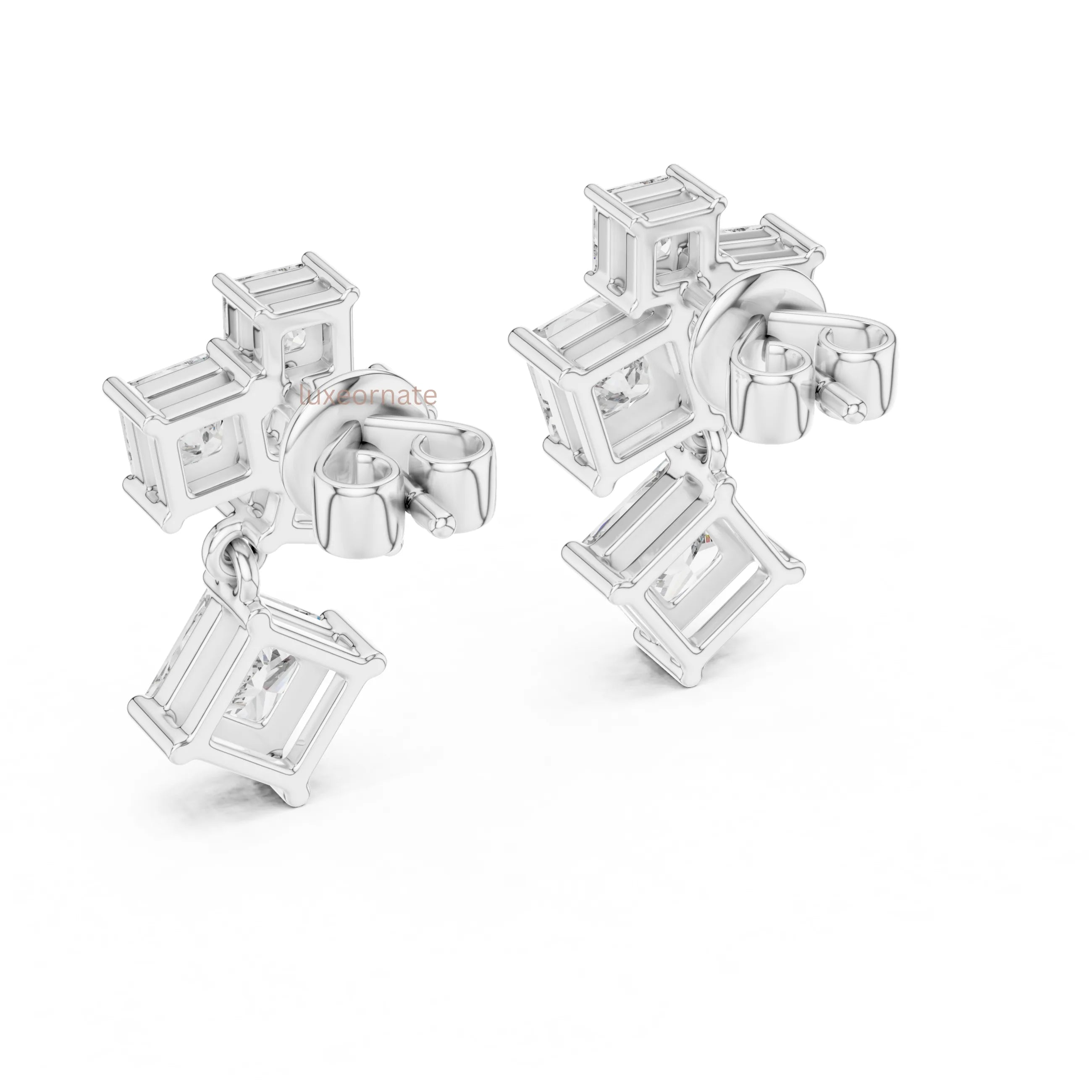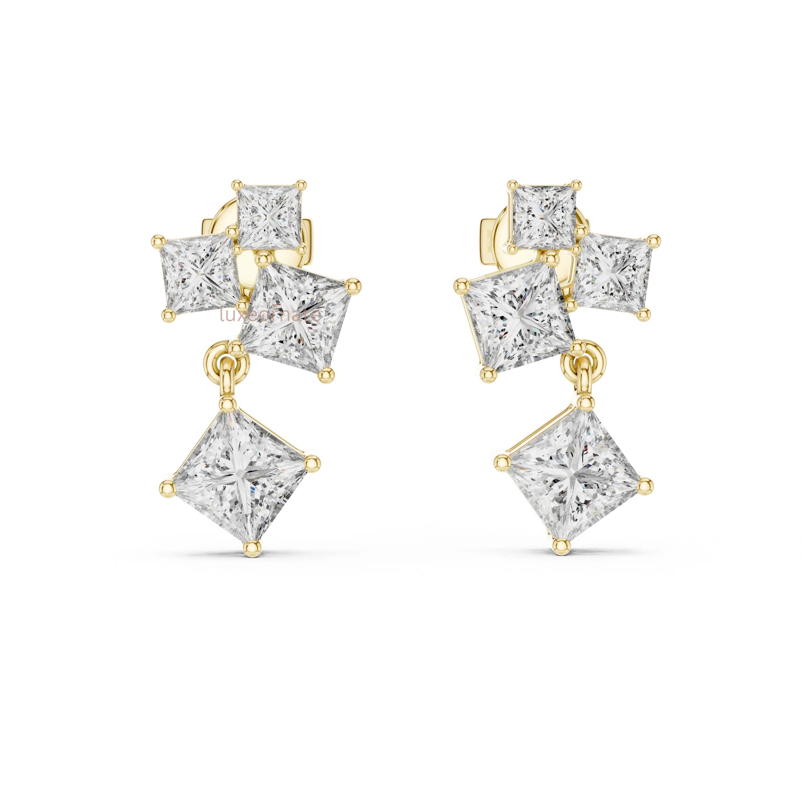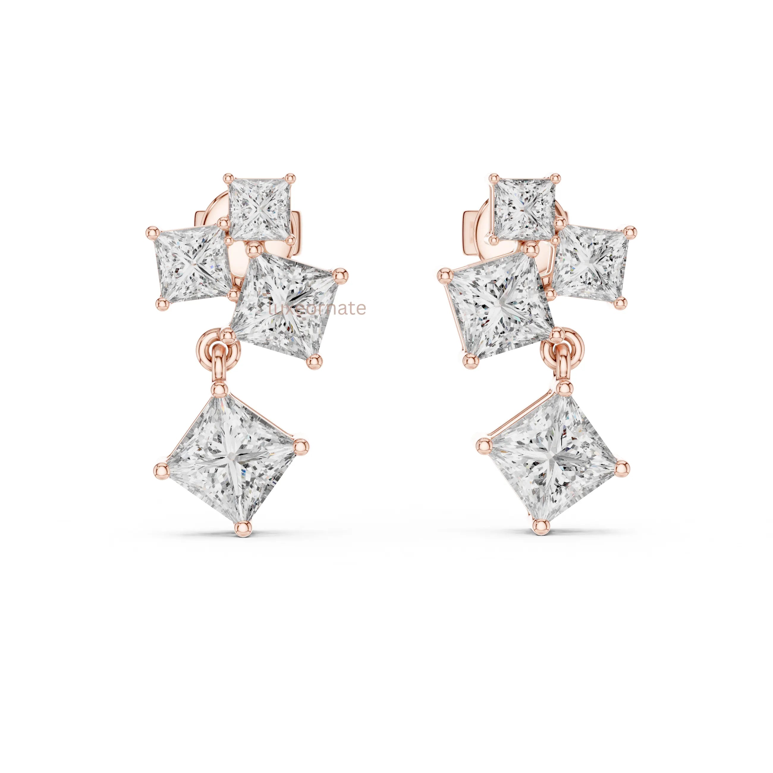 Radiant Cascade Princess Cut Lab Grown Diamond Drop Earrings