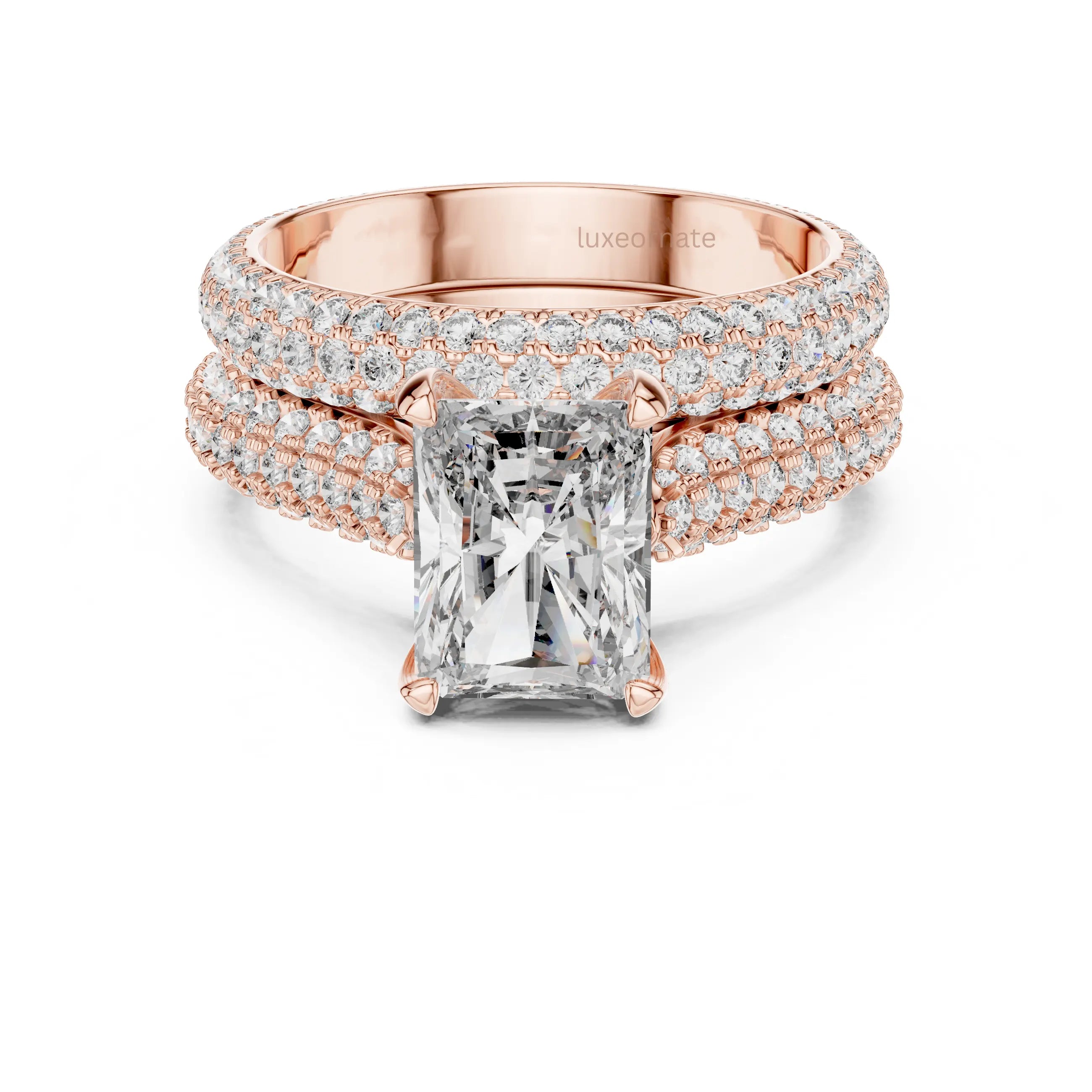 • Setting Style: Square Prong Center with Double Row Pavé Band