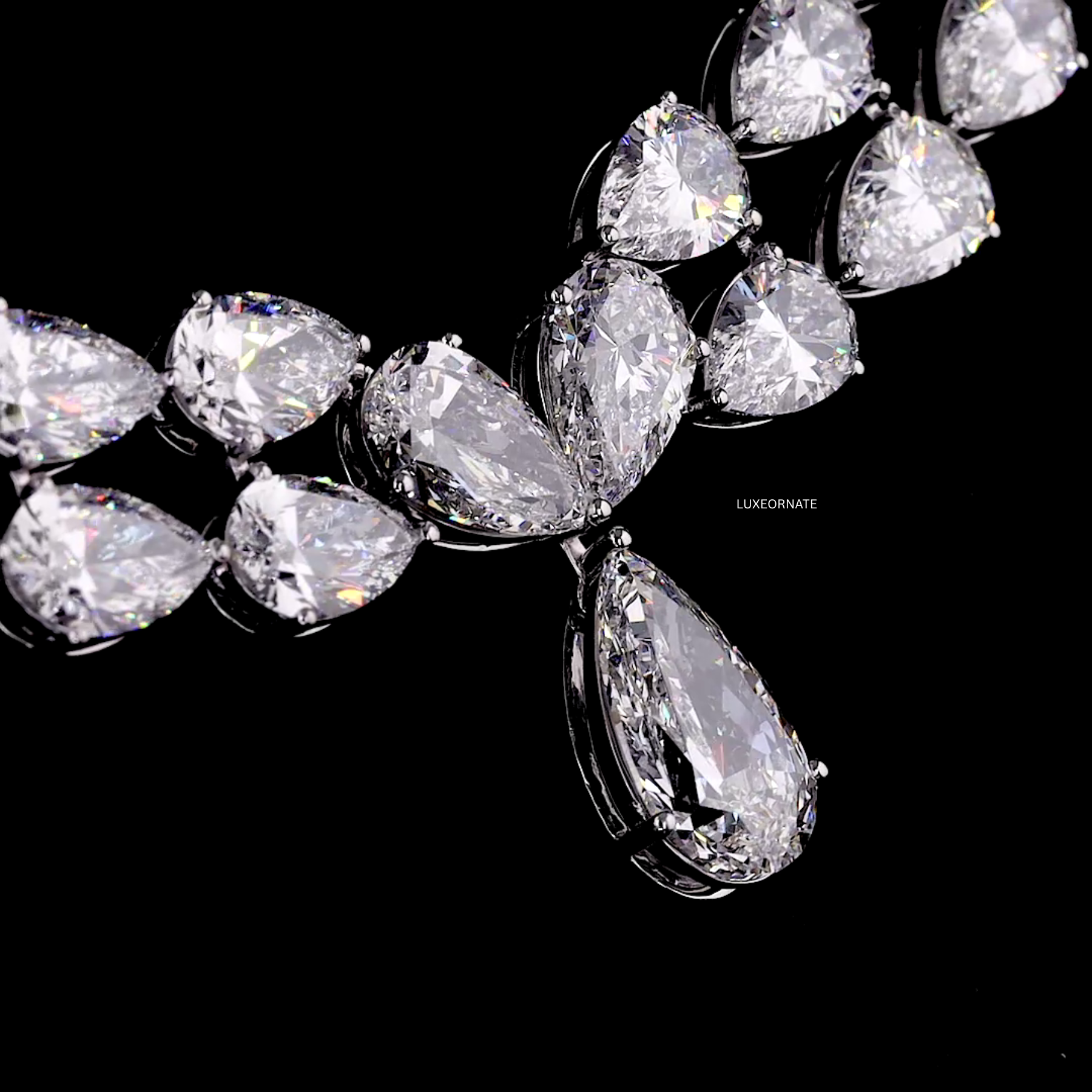Design: Double layer cascading pear cut diamond pattern