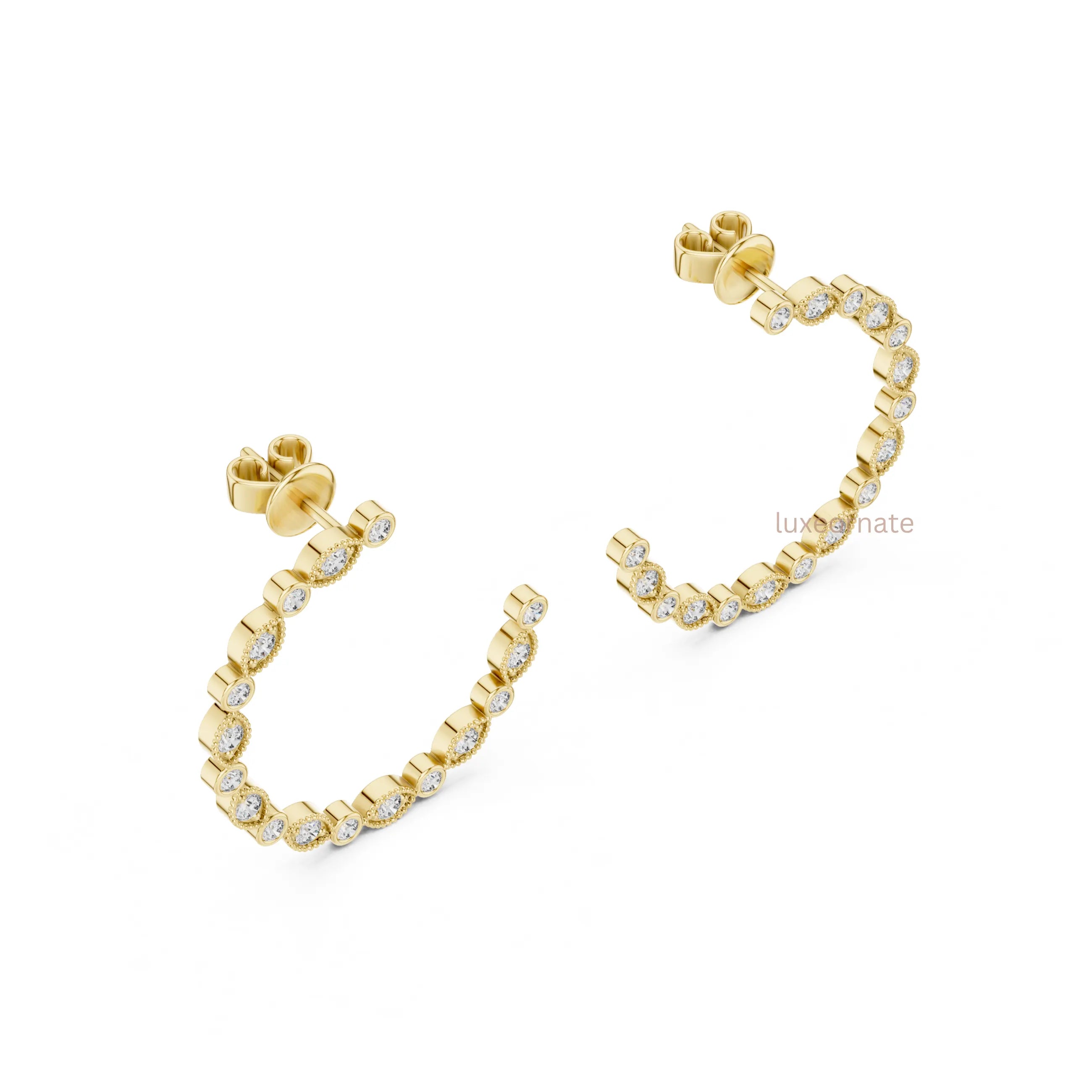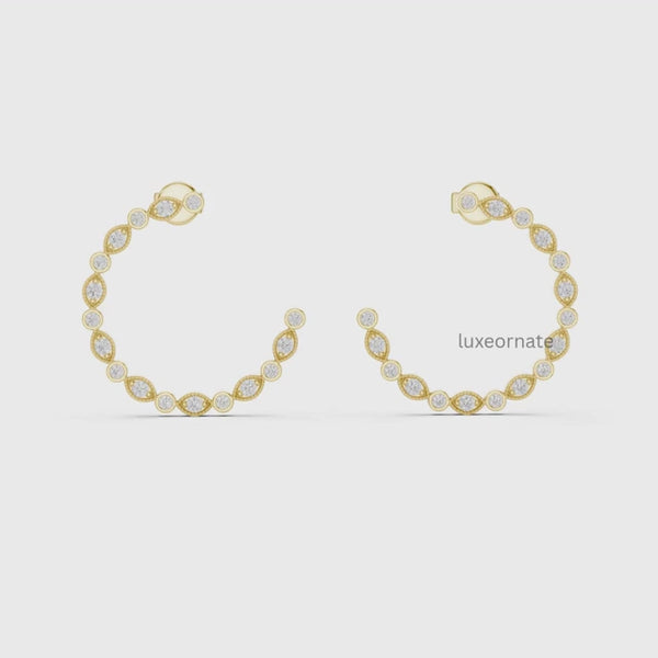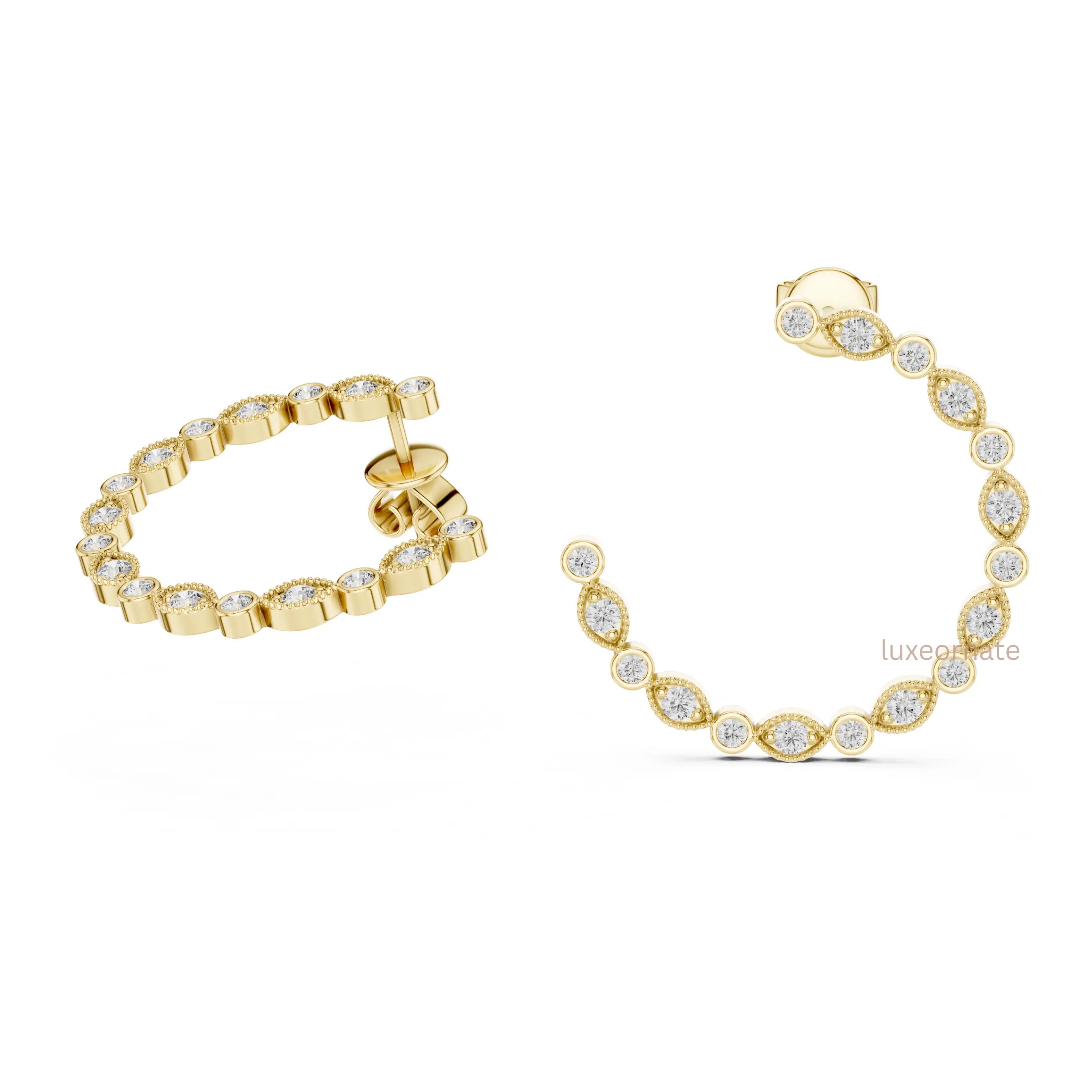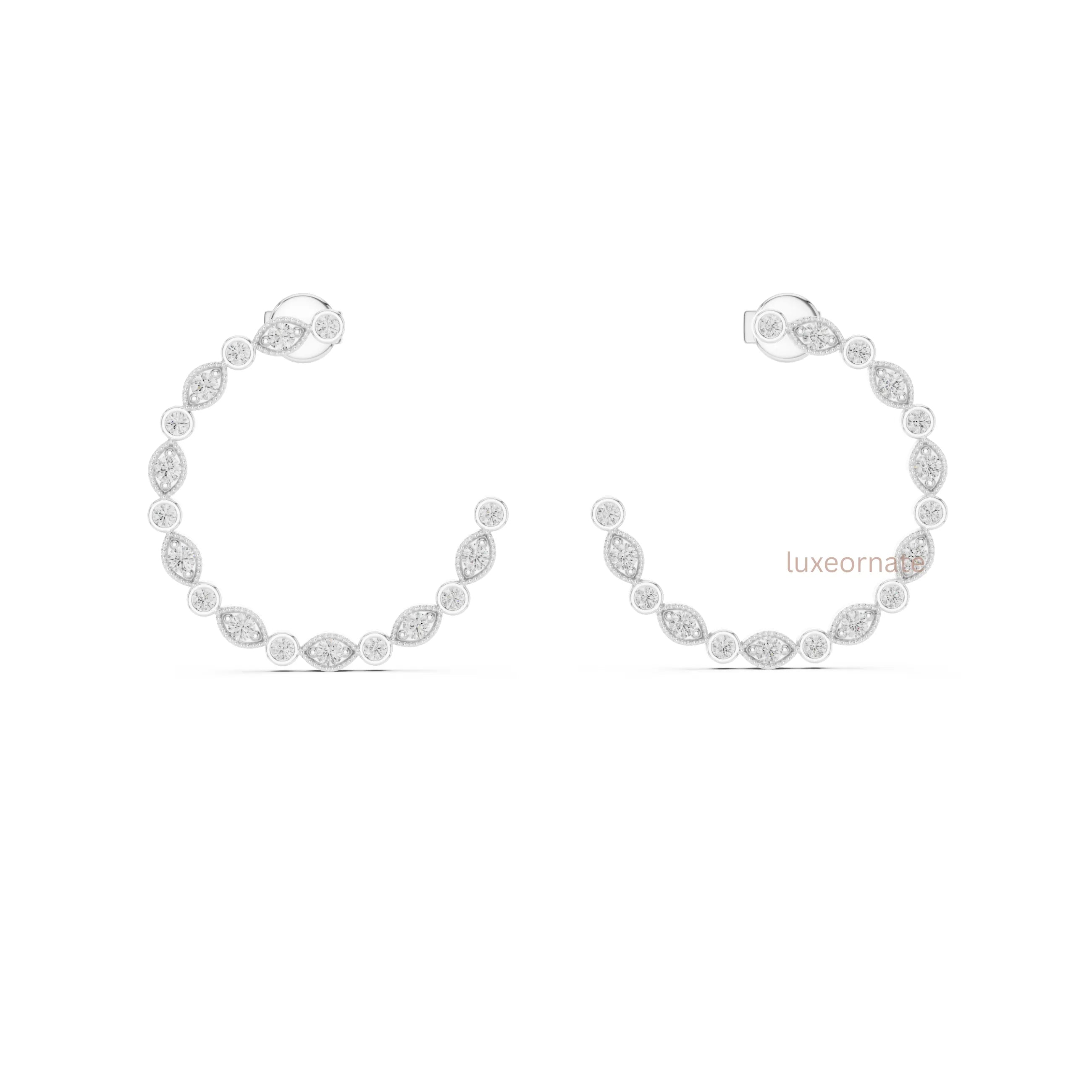 Stylish Half Hoop Earring in Lab Grown Diamonds