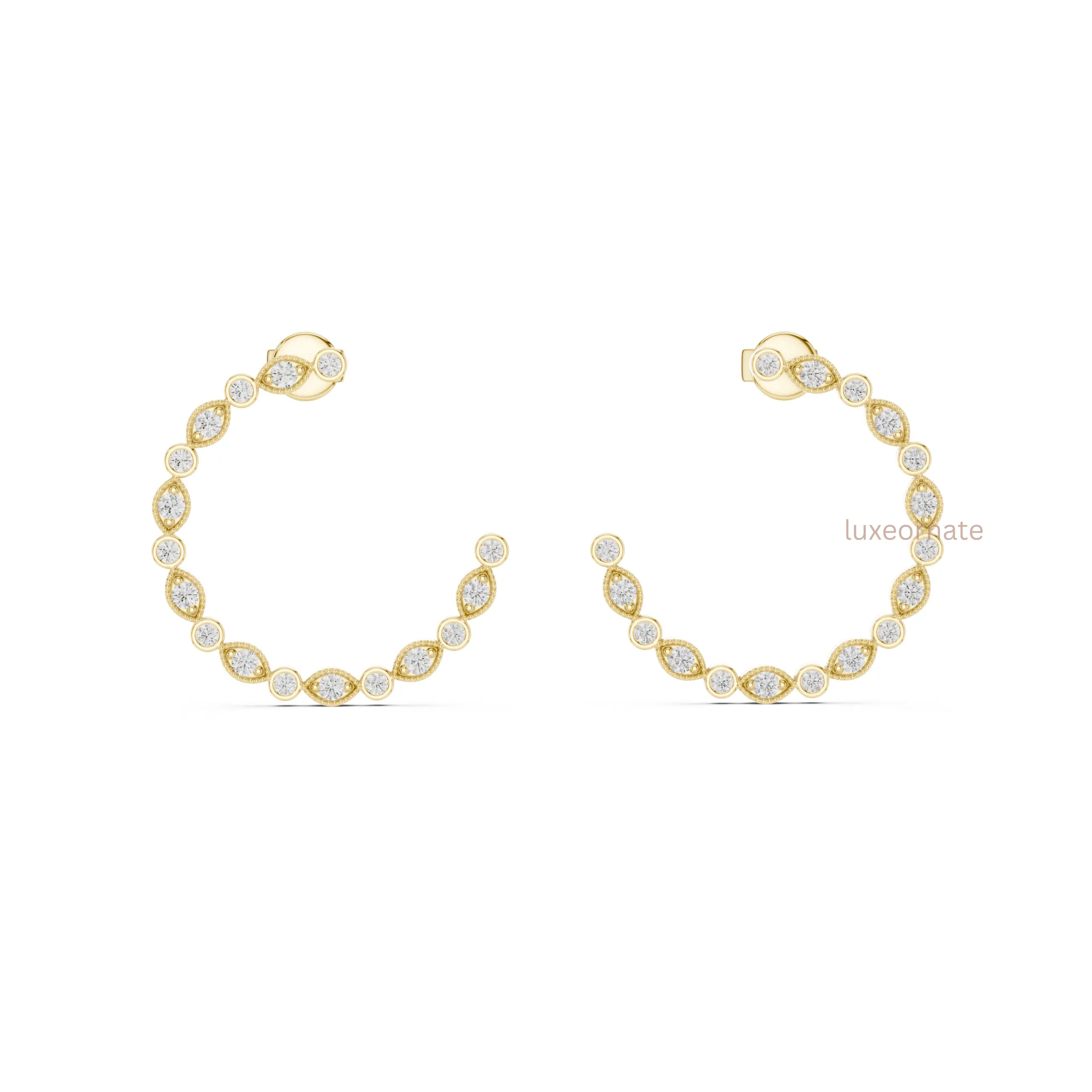 Designed for trendsetters who love refined sparkle, the Stylish Half Hoop Earring in Lab Grown Diamonds blends minimalist design with radiant brilliance. The graceful half hoop silhouette hugs the ear comfortably, while meticulously set lab grown diamonds add eye catching shimmer without overpowering the look.
