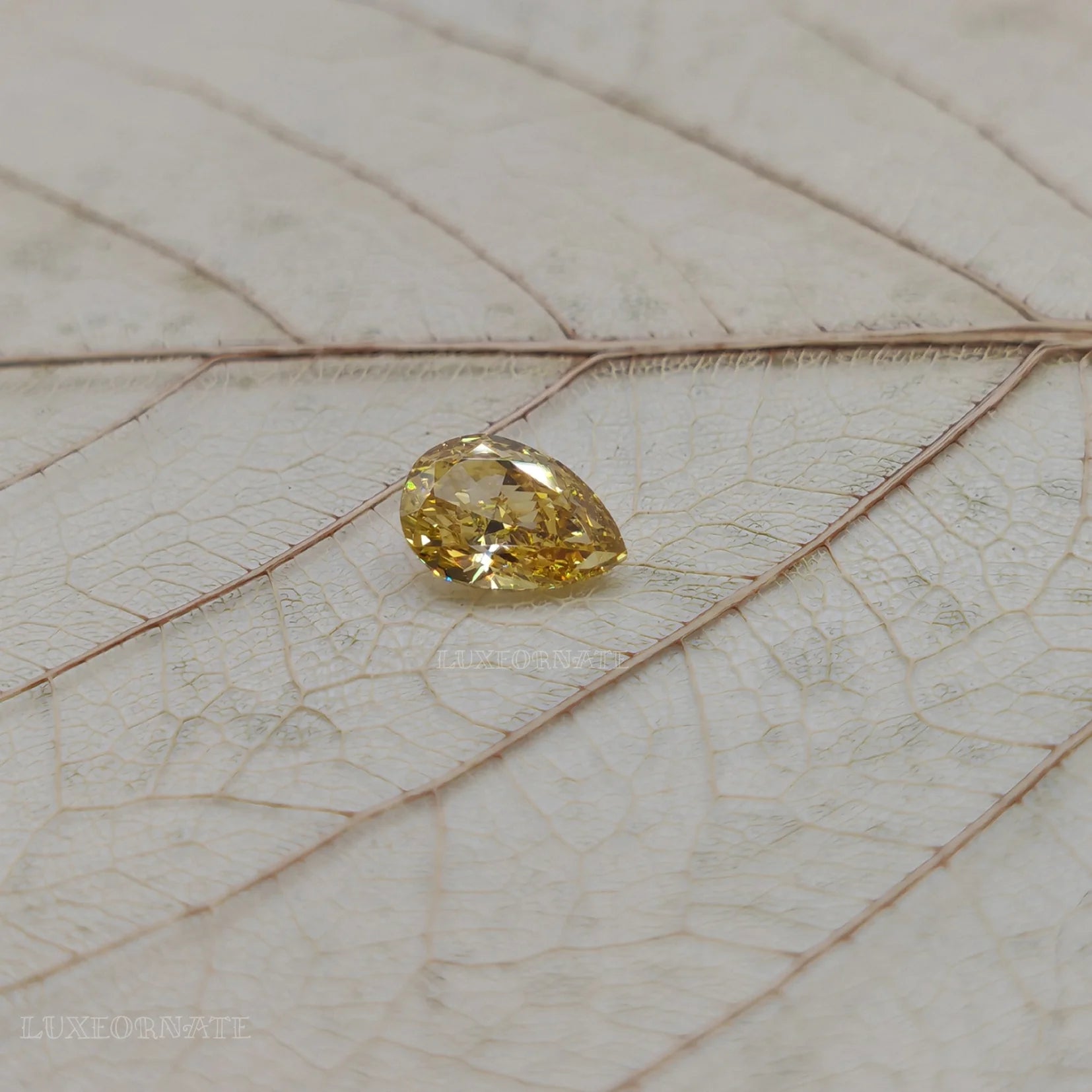 This captivating Fancy Yellow Pear Cut Lab Grown Diamond dazzles with radiant brilliance and a rich, sunny hue. Expertly cut for maximum sparkle, its elegant teardrop shape adds length and sophistication to any jewelry design. A stunning, ethical choice for engagement rings, pendants, and fine custom creations.